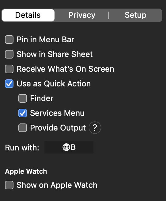 To activate these Shortcuts, you can put a keyboard command under Quick Actions